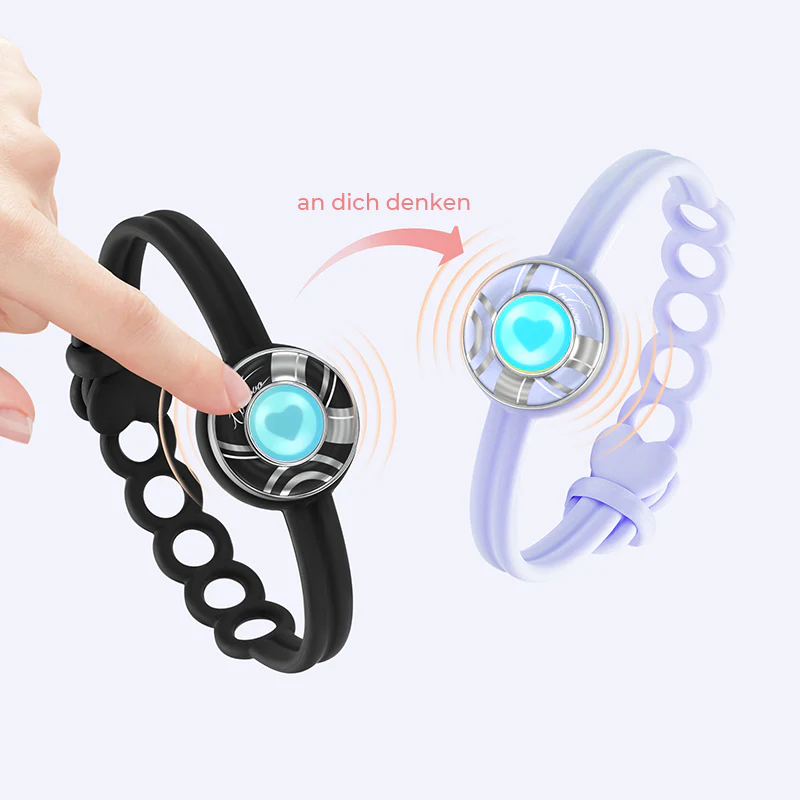 Erleben Sie die Magie der Totwoo-Langstrecken-Touch-Armbänder. Durch einfaches Berühren eines Armbands wird eine Vibration ausgelöst, die das andere zum Leuchten bringt.